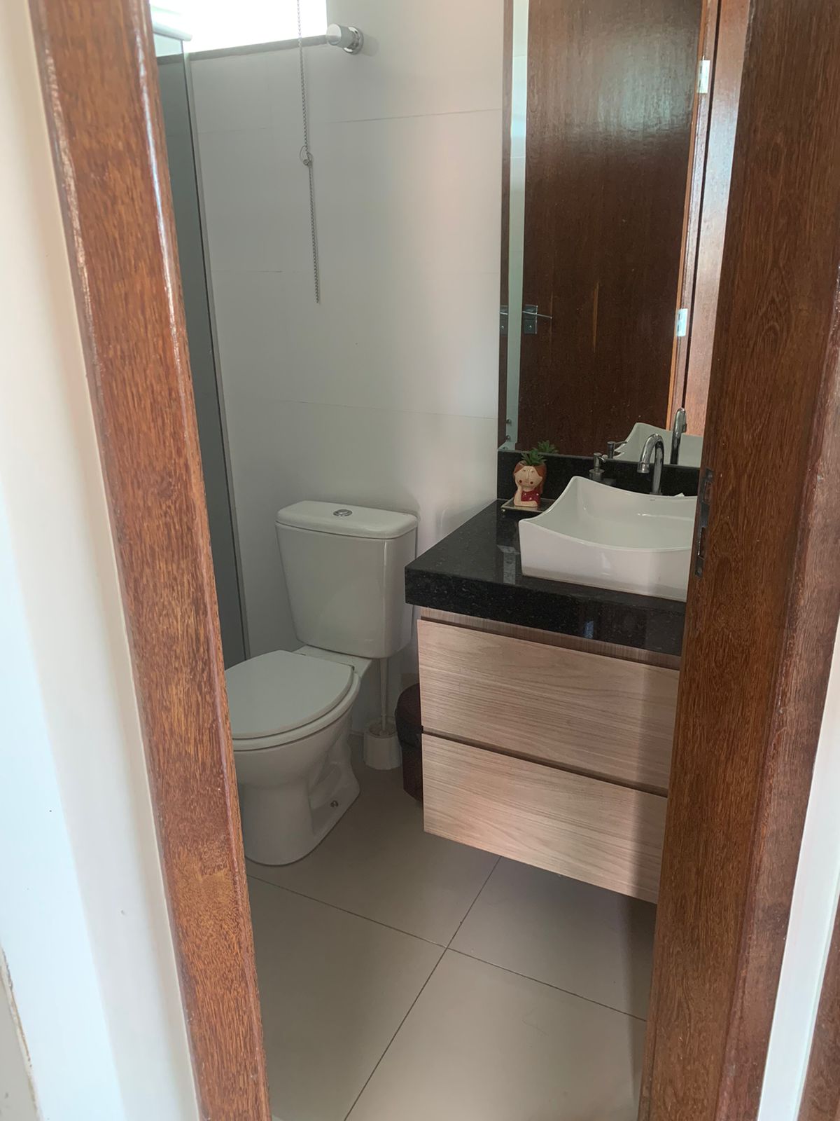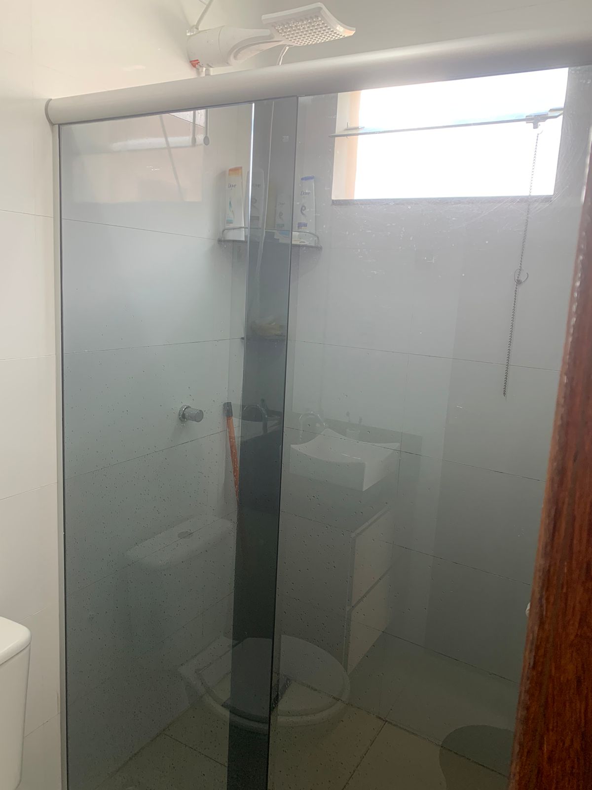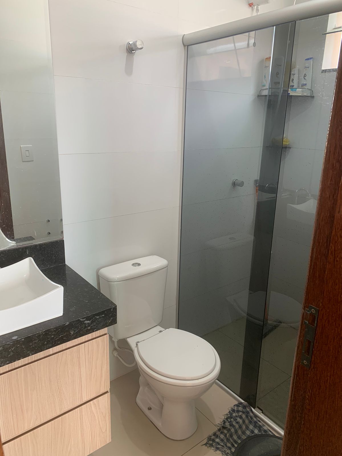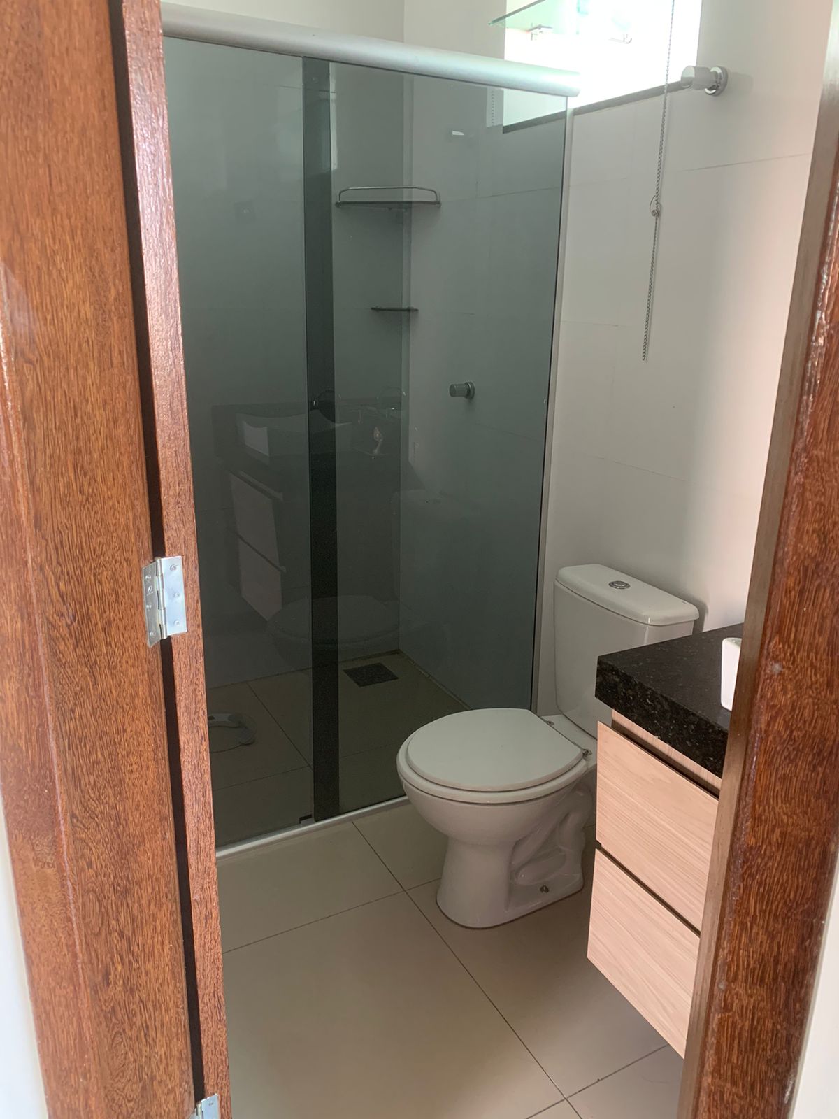 Banheiro social com marcenaria e box