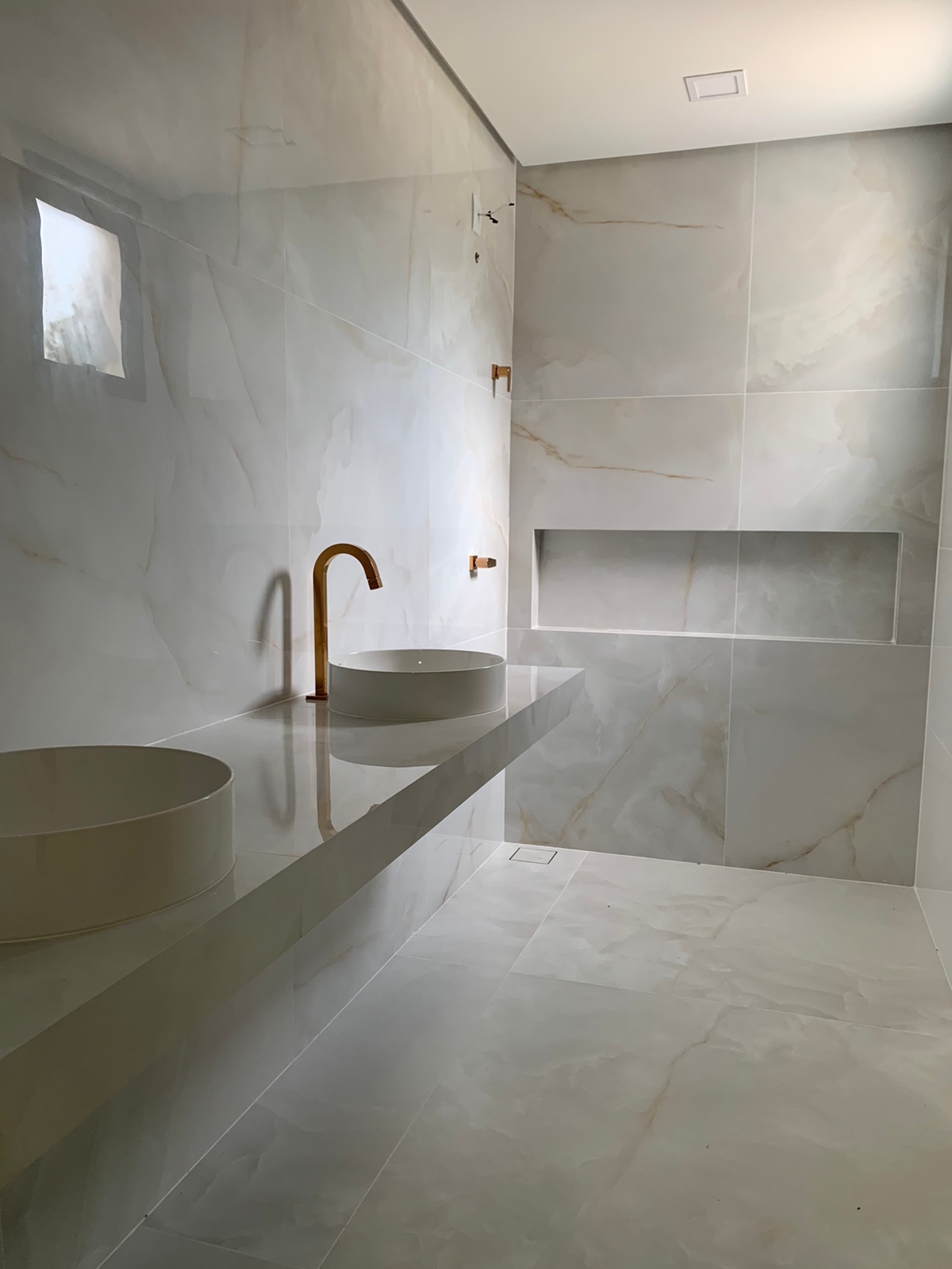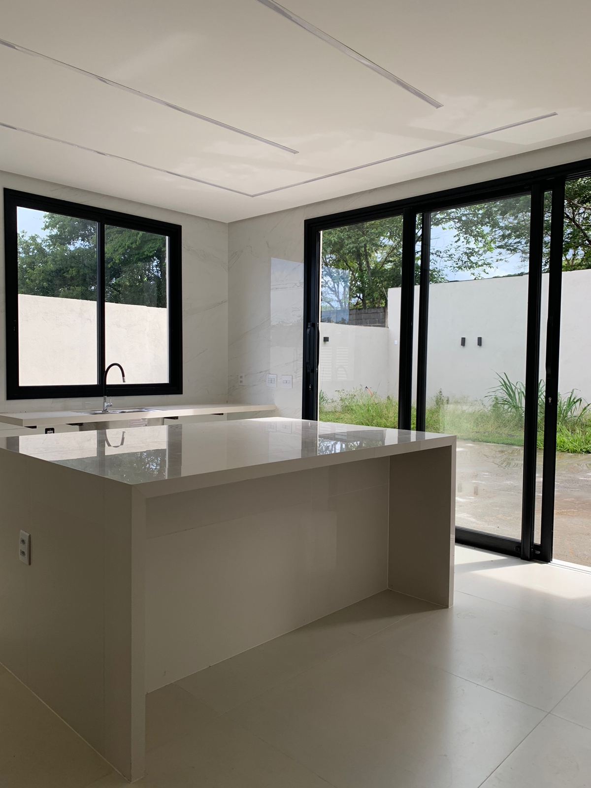 - Todas as bancadas e a ilha, são em Porcelanato com bases completas de ardósia.