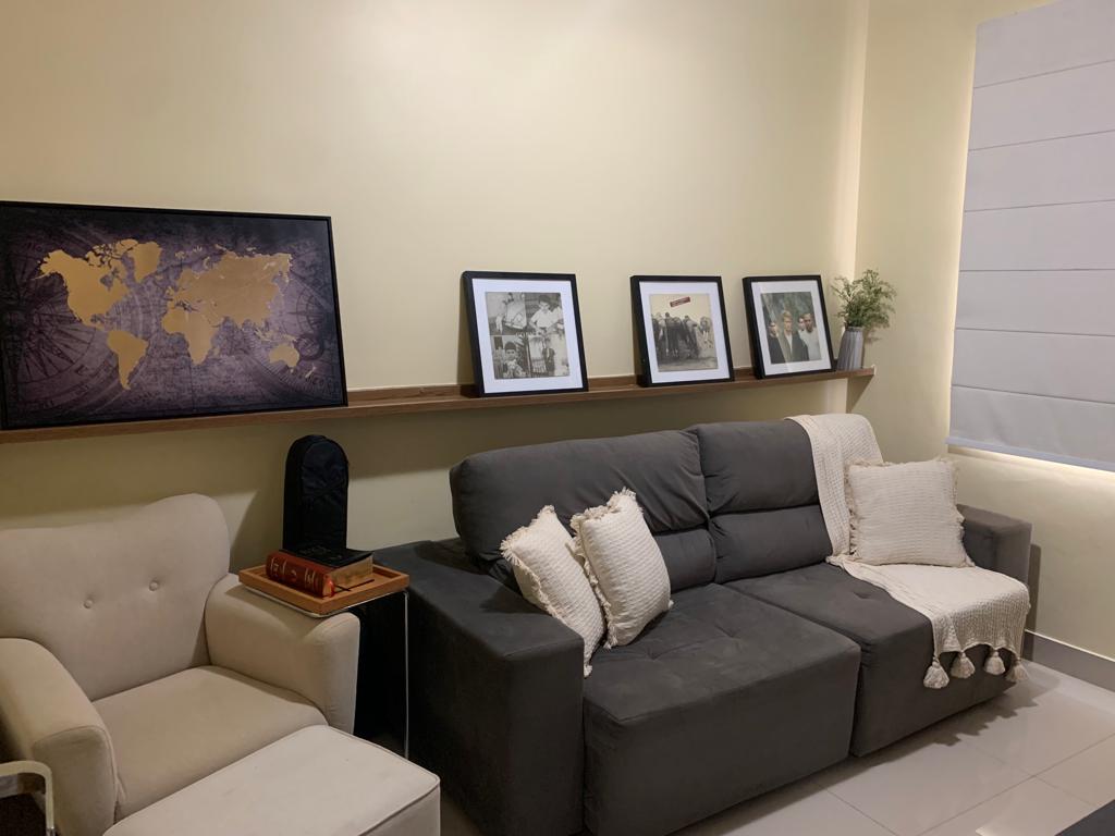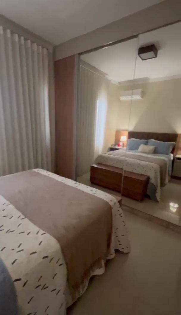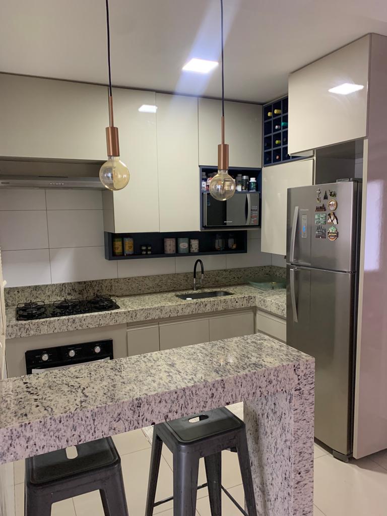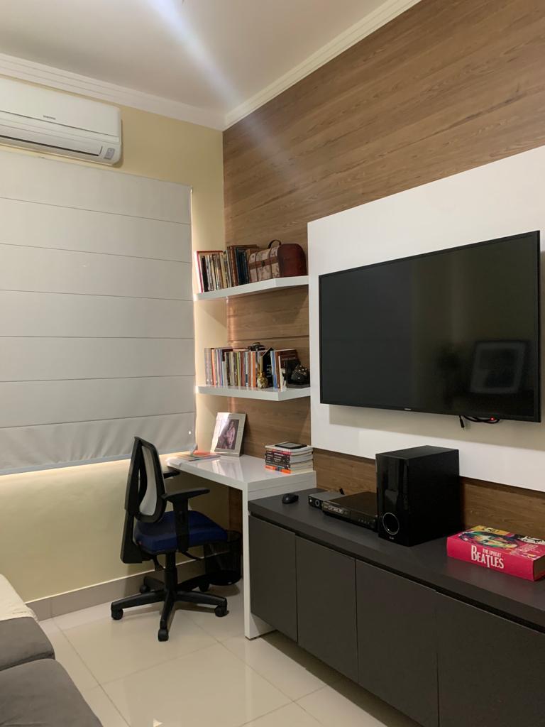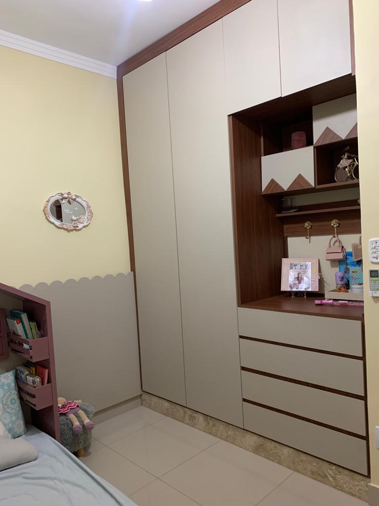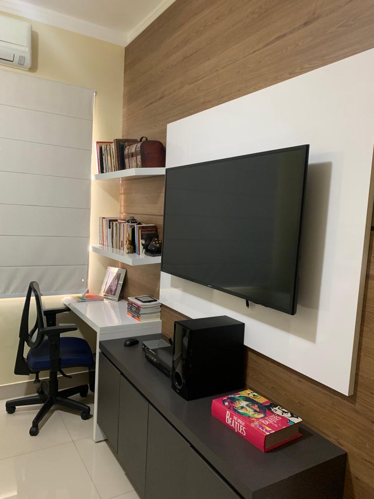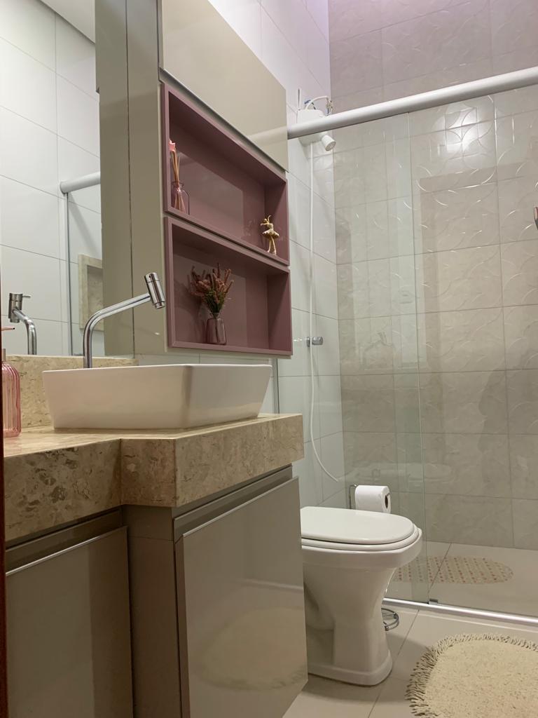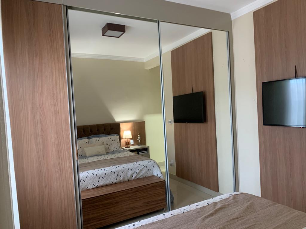 - 1 suíte, banheiro com marcenaria completa e quarto mobiliado, cabeceira, 2 criados mudo e armário/guarda roupas amplo.