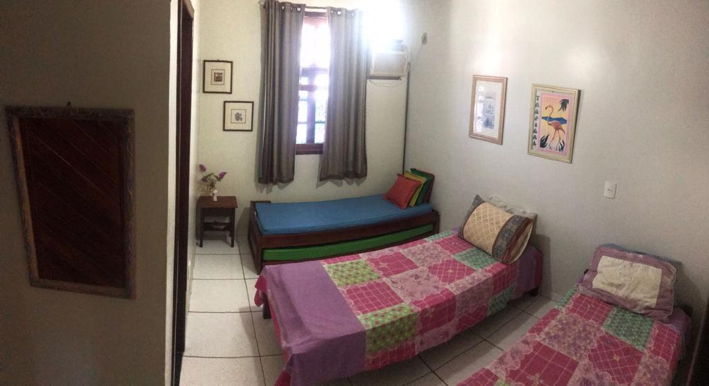 São duas Suítes completas com Ar condicionado, sendo 01 com cama de casal e varanda e a outra suíte com 02 camas de solteiro e 01 bi cama, ambas com armário.